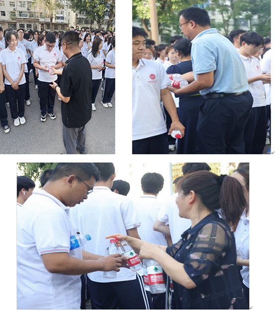 领导们给同学们逐一发放了矿泉水等饮品。