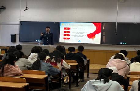 2024年退役士兵、2022级电子商务班王子晗同学在迎泽校区图书馆101教室作了题为“立志参军,精忠报国”的报告。本次讲座由辅导员李欣主持,2024级全体本科生参加。