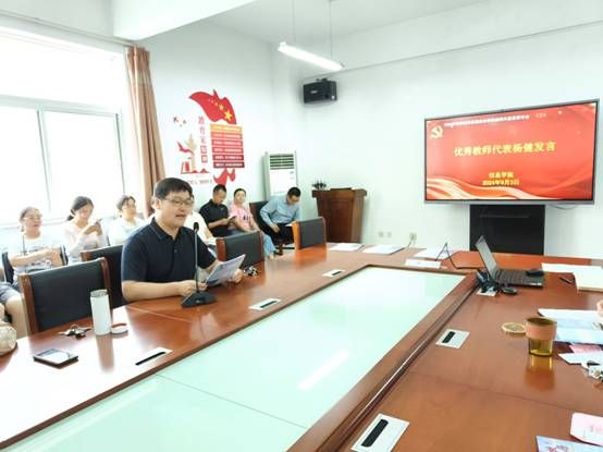 优秀教师代表杨健发言。他从青年教师的角度谈如何在新时代背景下,践行教育家精神,提升师德师风和专业素养。一是要坚定理想信念,提升思想政治素质;二是要坚守高尚师德,做学生的道德榜样;三是要不断提升专业素养,成为学生成长的引路人;四是要加强自我修养,保持教育激情。杨老师真切表达,号召全院教师弘扬教育家精神,争做新时代大先生,为建设教育强国贡献自己的力量。