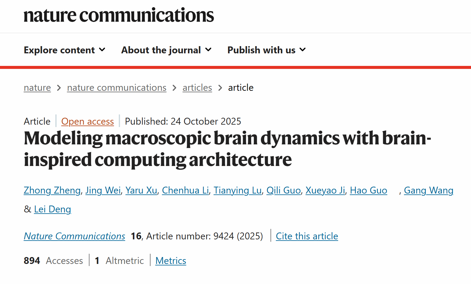 魏静博士与清华大学邓磊副教授团队合作,提出了一种在类脑计算芯片架构上加速宏观脑动力学建模的方案。该方案旨在解决宏观脑动力学建模中参数反演计算效量巨大、耗时严重的问题。研究团队成功提出一种创新方案,在“天机芯”类脑计算芯片上高效部署并加速了宏观脑动力学建模,在保持模型功能高保真度的同时,实现了数十至数百倍的性能加速。这一成果不仅为脑动力学建模提供了重要的计算基础设施,也为类脑计算芯片在神经科学和医学等科学计算领域的应用提供了思路。相关研究成果已于2025年10月24日发表于国际顶级学术期刊《自然·通讯》(Nature Communications),魏静为该论文的共同第一作者。