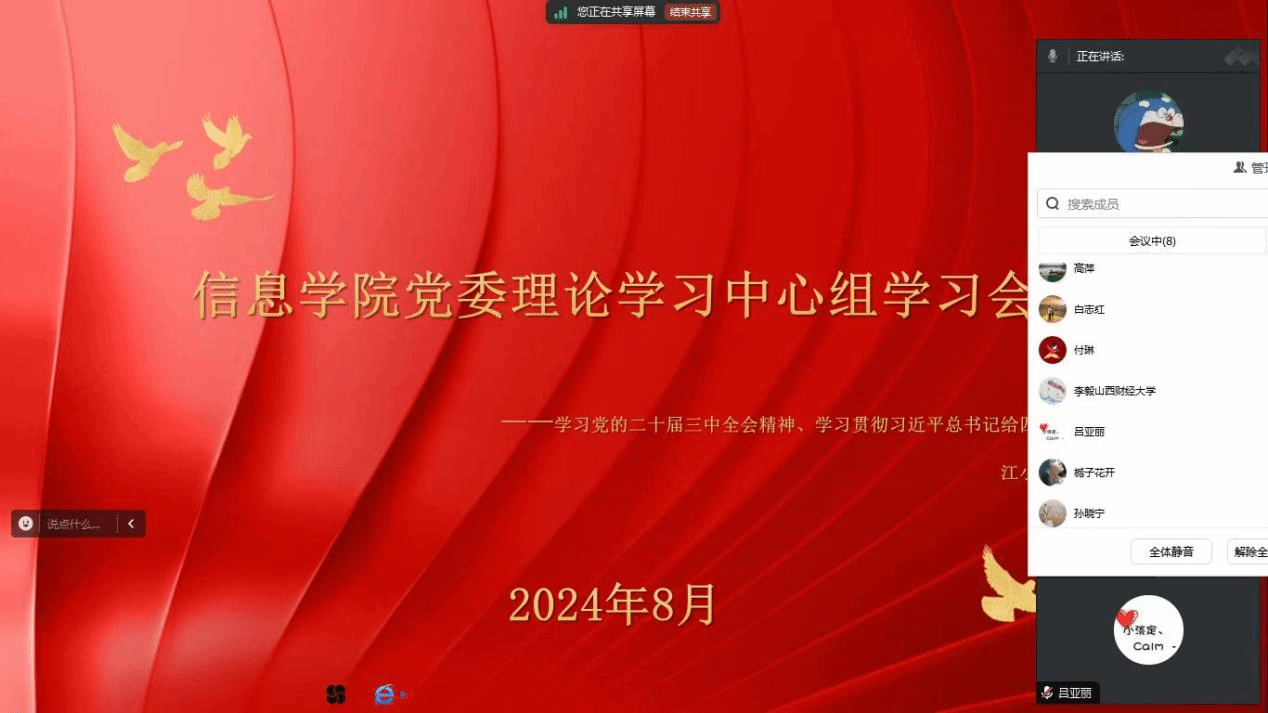 本次学习以腾讯会议的方式进行,会上传达学习了中国共产党第二十届中央委员会第三次全体会议精神和山西省委常委扩大会议精神,学习了习近平总书记给四川省南充市嘉陵区之江小学学生重要回信精神。